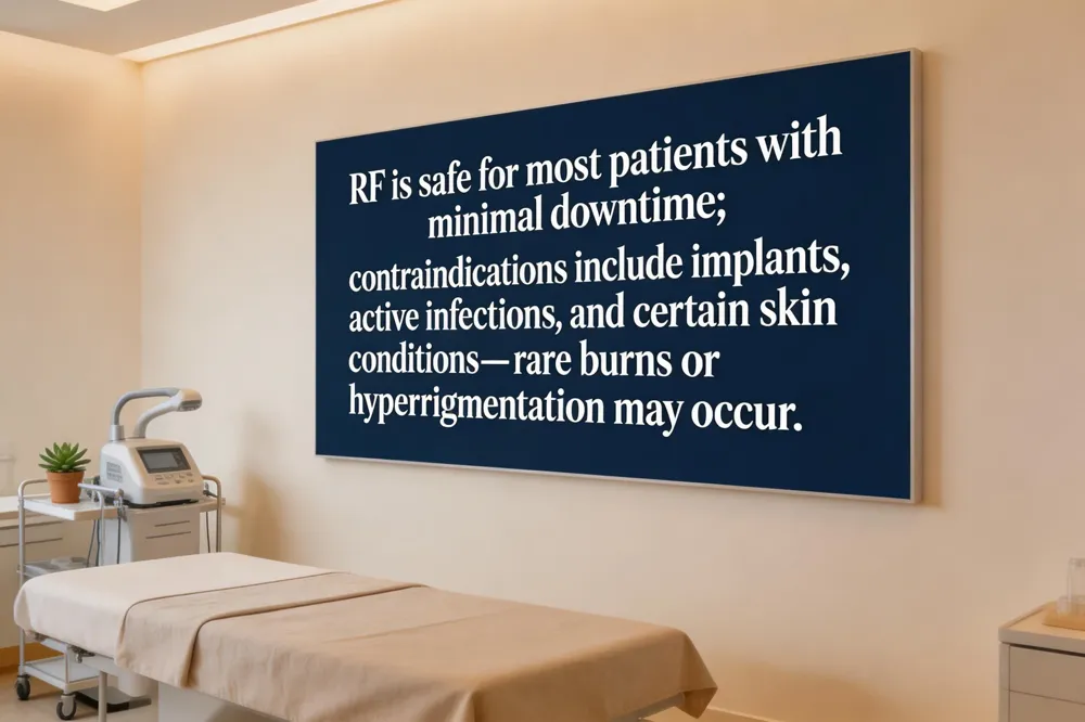 Cancer risk and RF energy safety – RF devices emit low‑energy, non‑ionizing electromagnetic waves. Large epidemiologic studies have found no link between brief, localized RF exposure in cosmetic settings and cancer. Regulatory agencies (FDA, AAD) deem the technology safe when used as directed.