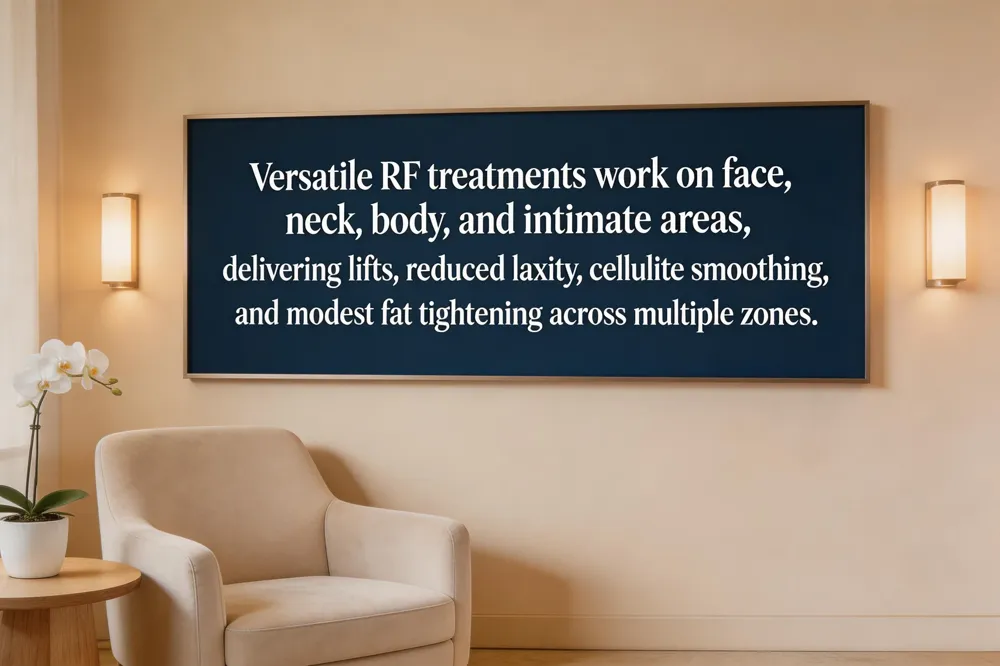 Body contouring benefits extend to the abdomen, thighs, arms, and hands. RF energy penetrates deeper than most lasers, stimulating fibroblasts throughout the dermis and sub‑cutaneous tissue, which improves laxity, reduces the appearance of cellulite, and can even aid in localized fat reduction. A series of 3‑6 abdominal sessions often produces a firmer mid‑section within 2‑4 months, with effects persisting 12‑24 months when combined with proper skincare. Vaginal rejuvenation and pelvic health are also supported by RF’s ability to tighten mucosal tissue and enhance elasticity, offering a non‑invasive alternative to surgical options.