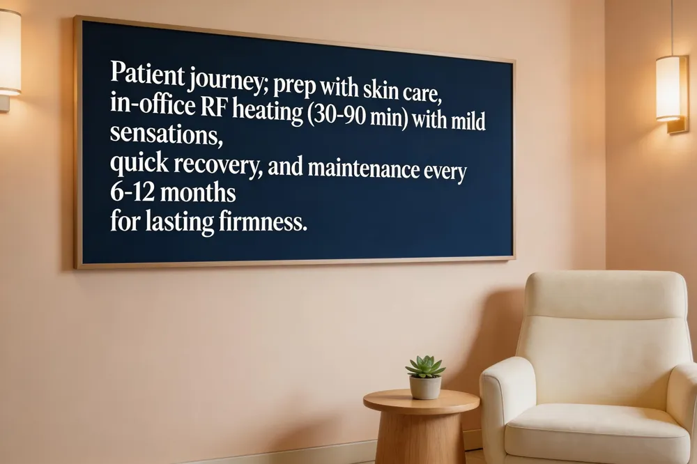 What to expect during treatment: RF skin‑tightening uses low‑frequency electromagnetic waves to heat the mid‑dermis to 50‑75 °C. Most patients feel a gentle warming or mild tingling sensation as collagen fibers contract instantly. The procedure lasts 30‑90 minutes per area, and a handheld wand or fractional microneedle device delivers energy uniformly while a cooling gel protects the epidermis.