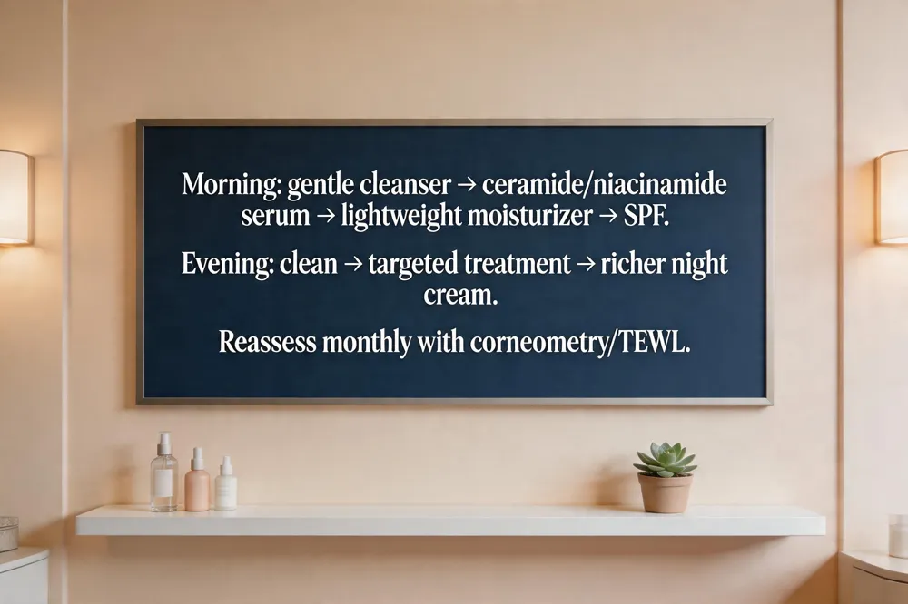 - Keep actives pH‑compatible; avoid layering high‑strength acids or retinoids on compromised skin.