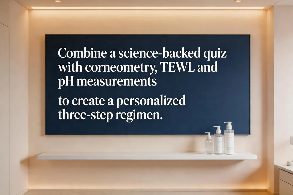 The quiz results and device data are translated into a three‑step regimen: a gentle pH‑balanced cleanser, a barrier‑supporting serum or moisturizer rich in ceramides, niacinamide or hyaluronic acid, and broad‑spectrum SPF 30+. Adjustments are made seasonally and reassessed monthly to keep the barrier strong and the skin radiant.