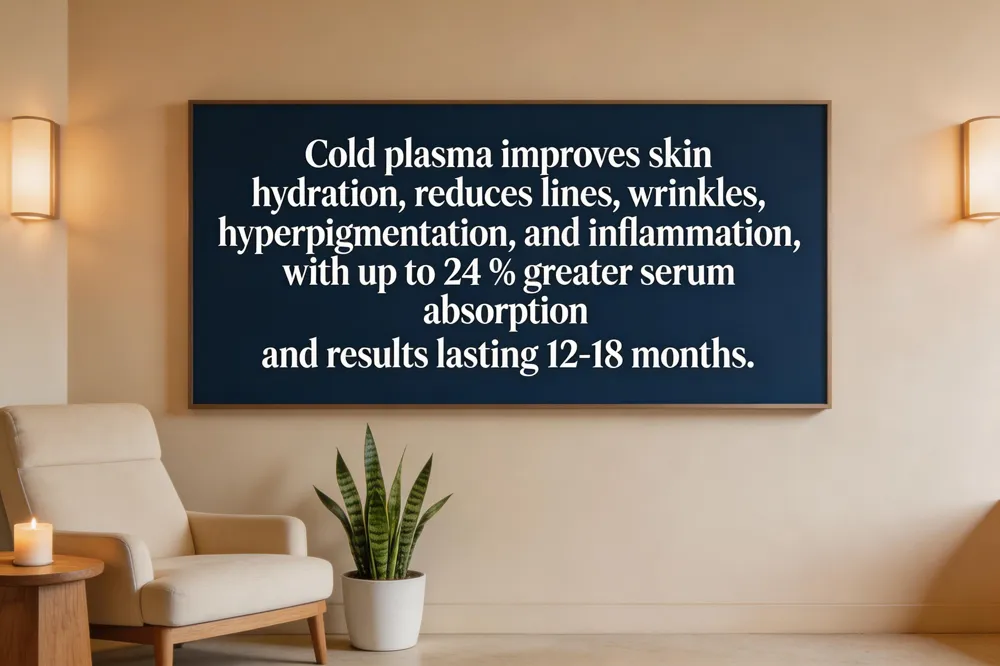 Cold plasma facial benefits and side effects: The therapy stimulates fibroblasts, increasing collagen and elastin, reducing fine lines, improving texture, and fading hyperpigmentation. Side effects are typically mild redness, swelling, or tingling that resolve within a few hours; occasional dry skin or light bruising is short‑lived.