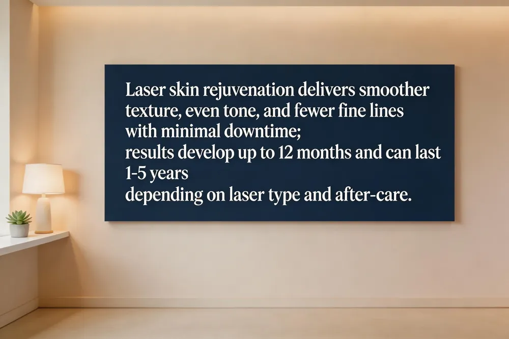 Results continue to develop for up to 12 months and can last 1‑5 years depending on laser type, depth of treatment, and patient lifestyle. Ablative CO₂ lasers may sustain improvements for 2‑5 years, while non‑ablative fractional lasers typically last 1‑2 years. Ongoing sunscreen use, moisturization, and periodic touch‑ups extend longevity.