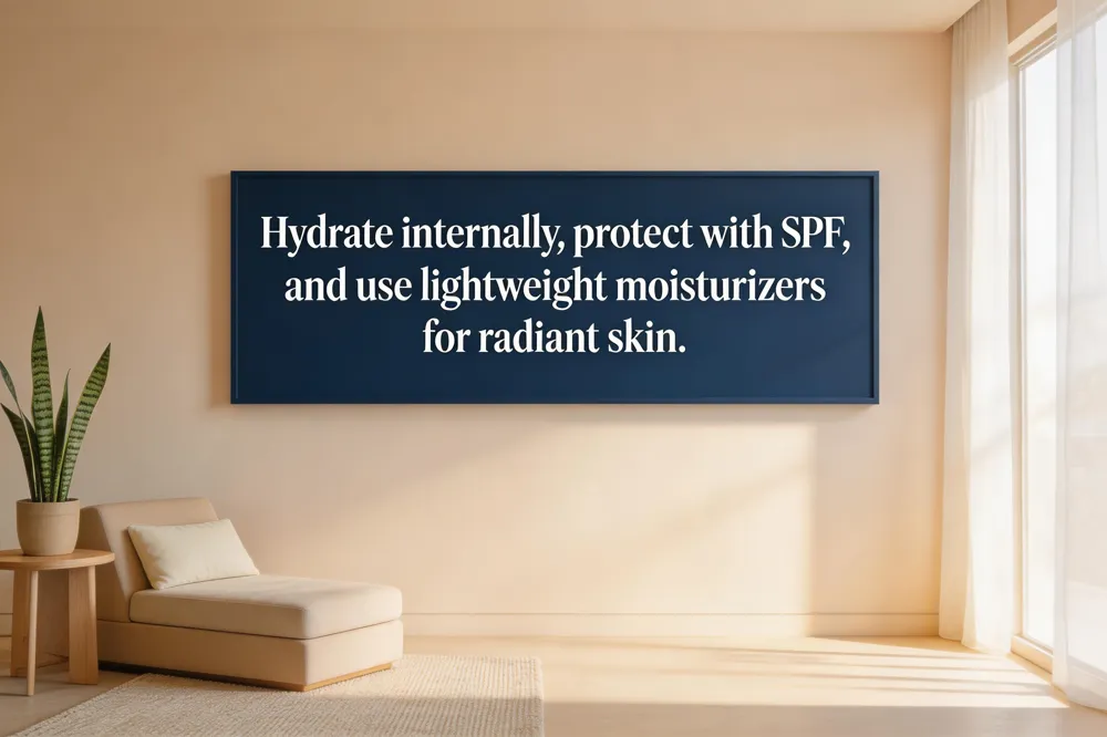 Stay well‑hydrated from the inside out—aim for 2–3 L of water daily and include water‑rich foods such as cucumber and watermelon. Pair this with hyaluronic‑acid serums or gels that can hold up to 1,000 × their weight in water, providing lightweight, non‑greasy hydration that plumps the epidermis without clogging pores.
