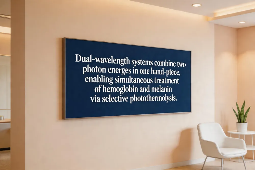 Dual‑wavelength laser systems deliver two distinct photon energies in a single hand‑piece, allowing clinicians to treat separate chromophores—hemoglobin and melanin—simultaneously. This approach follows the principle of selective photothermolysis, where laser energy is absorbed preferentially by the target chromophore, heating it to a temperature that coagulates the vessel or fragments pigment while sparing surrounding tissue.