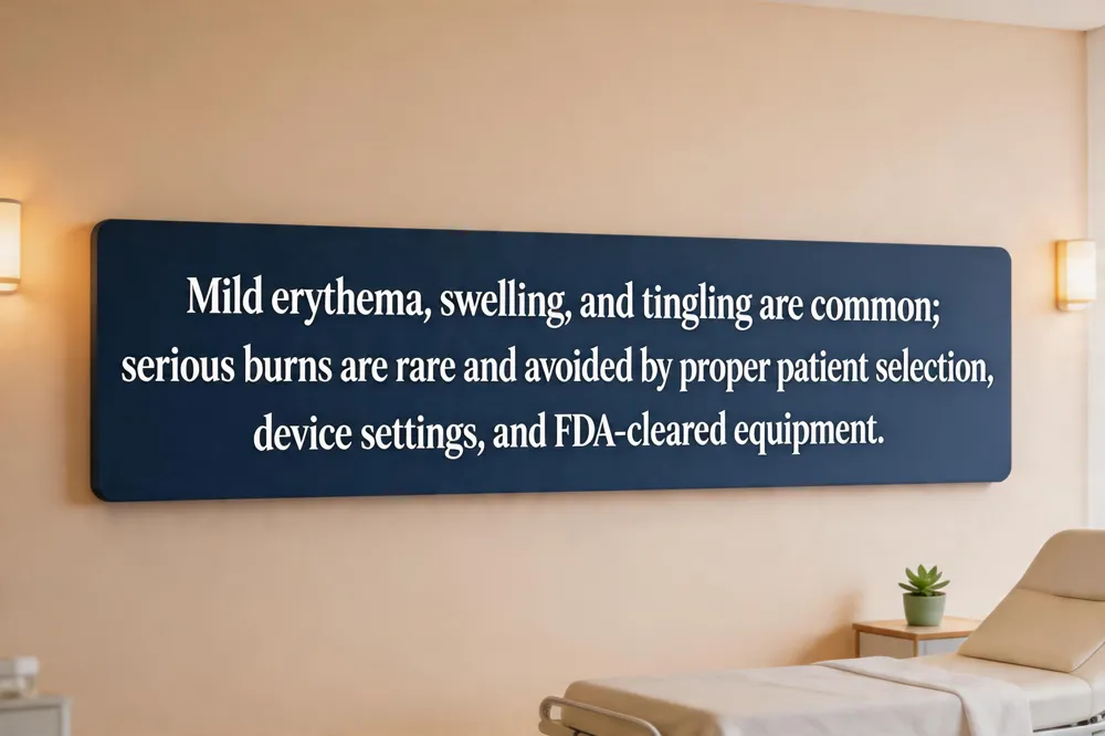 Radiofrequency (RF) skin tightening is generally safe, but complications arise when heat is applied excessively or to unsuitable patients. The most common adverse events are mild erythema, transient swelling, and a temporary warm sensation that resolve within 24 hours. More serious issues—burns, blistering, hyper‑ or hypopigmentation, loss of facial volume, or scarring—occur when device settings are too high, the probe is held too long, or the practitioner lacks proper training. To avoid these outcomes, providers must perform a thorough pre‑treatment consultation, adjust energy levels to the patient’s Fitzpatrick skin type, and use FDA‑cleared equipment with real‑time temperature monitoring.