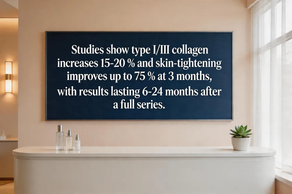 Duration of tightening effects – Clinical assessments showed 35‑40 % skin‑tightening improvement at treatment end, which climbed to 70‑75 % three months later. Wrinkle reduction reached 90‑95 % at the same follow‑up. Collagen‑induced firmness can persist 6‑12 months after a single session and 12‑24 months after a full series of 2‑6 treatments, especially with proper after‑care.