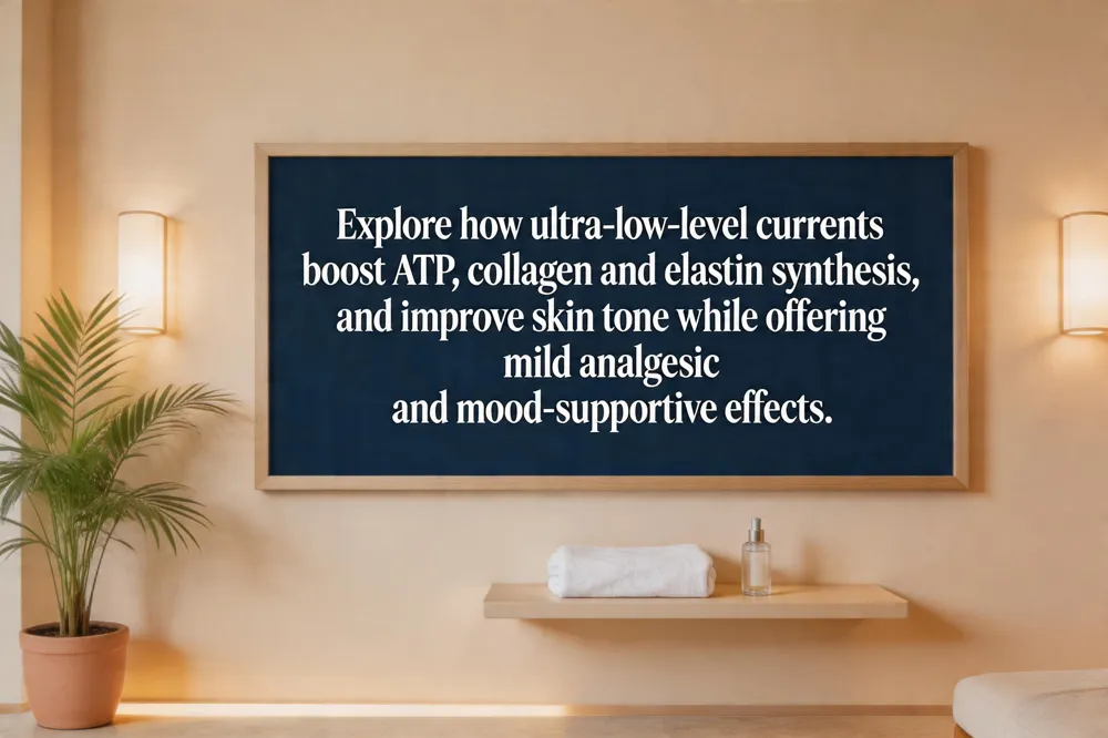 Microcurrent therapy physiotherapy is a non‑invasive treatment that delivers ultra‑low‑level electrical currents (typically < 1 mA) to facial muscles and dermal cells. By mimicking the body’s natural bio‑electric signals (which boosts ATP production up to three‑fold, which fuels fibroblast activity, enhances collagen and elastin synthesis (15 by14 % collagen, up to 45 % elastin fiber count and improves microcirculation. The result is firmer, smoother skin with reduced fine lines and a lifted contour. Patients usually feel only a mild tingling; occasional transient redness, warmth or brief swelling may occur, but serious adverse events are rare. Contraindications include pregnancy, pacemakers, active skin infections and severe epilepsy. Beyond skin rejuvenation, microcurrent relieves musculoskeletal and neuropathic pain by increasing ATP‑driven tissue repair, reducing inflammation, and modulating nerve‑signal transmission. Early pilot data suggest low‑intensity neurofeedback may lower depressive scores, although larger studies are needed. Overall, microcurrent offers a painless, quick‑recovery option that improves skin elasticity, enhances product absorption, supports lymphatic drainage, and provides modest analgesic and mood‑supportive effects—all with minimal downtime.
