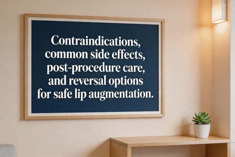 Before any lip augmentation, a thorough medical review is essential. Contraindications include active oral infections, uncontrolled autoimmune disease, smoking, and bleeding‑clotting disorders, as these conditions increase the risk of infection, delayed healing, or vascular complications. Most patients experience mild swelling, bruising, and tenderness in the first 24–48 hours; these symptoms typically resolve within a few days with cold compresses, elevation, and avoidance of strenuous activity, hot foods, and straws. If over‑correction, asymmetry, or an unwanted volume persists, hyaluronidase can safely dissolve hyaluronic‑acid filler in a matter of minutes. Post‑procedure care emphasizes staying well‑hydrated, limiting alcohol and NSAIDs for 24–48 hours, and following the injector’s instructions on activity restrictions to minimize bruising. Selecting a board‑certified dermatologist, plastic surgeon, or experienced aesthetic injector ensures adherence to sterile technique, proper product selection, and prompt management of any adverse events, safeguarding both results and patient health.