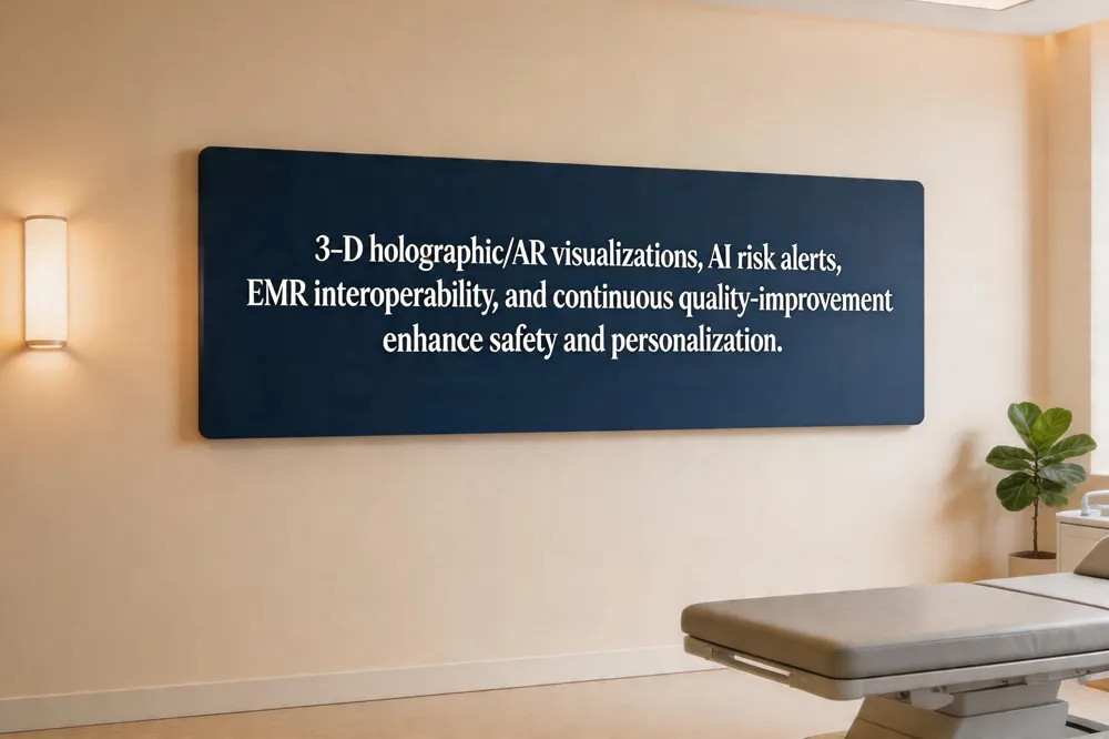 Emerging 3‑D holographic and augmented‑reality (AR) tools are narrowing the virtual‑in‑person gap by allowing patients to view realistic, manipulable renderings of expected outcomes during tele‑aesthetic consults. When combined with AI‑driven risk‑alert systems, these platforms can flag contraindications—such as recent isotretinoin use, active infections, or vascular anomalies—before a procedure is scheduled, enabling predictive analytics that prioritize patient safety. Interoperability with electronic medical records (EMR) ensures that high‑resolution images, consent forms, and secure e‑prescriptions flow seamlessly into a single, HIPAA‑compliant workflow, reducing documentation errors and supporting standardized reporting. To sustain these advances, providers must complete certified telehealth training, obtain competency in digital imaging, and engage in continuous quality‑improvement programs that audit technical performance, patient satisfaction, and adverse‑event reporting. Together, these innovations create a resilient, data‑rich ecosystem that upholds safety while delivering personalized, cutting‑edge aesthetic care.