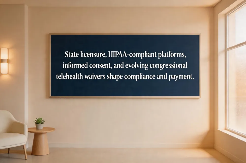 State‑specific licensure remains a cornerstone of compliance: providers must hold an active medical license in the patient’s state of residence, and many clinicians use the Interstate Medical Licensure Compact to streamline multi‑state practice. All platforms must employ HIPAA‑compliant end‑to‑end encryption, multi‑factor authentication, and Business Associate Agreements to protect e‑PHI.
