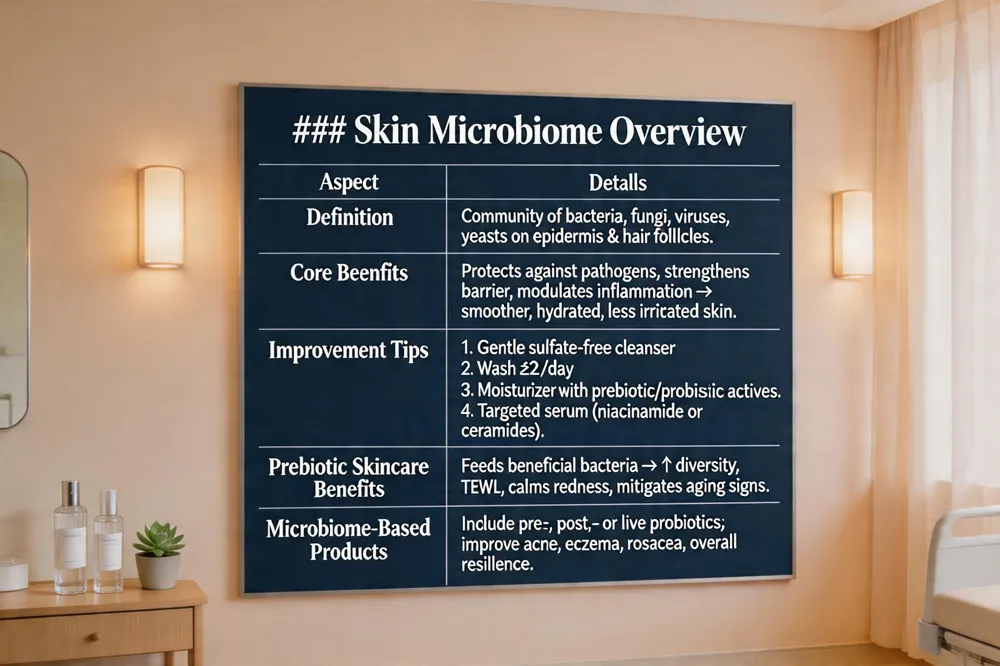 | 4️⃣ Post‑Procedure Care | Microbiome‑friendly moisturizers (pre‑/probiotic) | Restore barrier, reduce inflammation | Squalane‑rich cream, hyaluronic acid serum. |