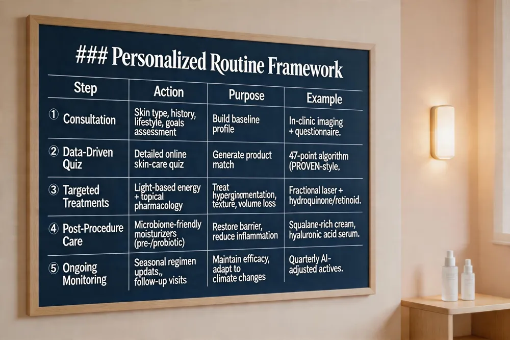 | Medical Aesthetic Clinics | Visual assessment, high‑resolution imaging, microbiome/genetic testing, compounded formulas | Custom retinoid‑peptide blends | Tailored actives, seasonal regimen adjustments. |
