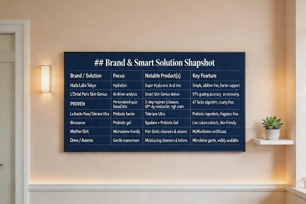 | At‑Home Microbiome Kits | DNA skin swab → sequencing → personalized actives | Milieu Bioflora DNA swab, Labskin Skin Trust Club | Quarterly algorithm‑driven reformulation (e.g., add hyaluronic acid in winter). |