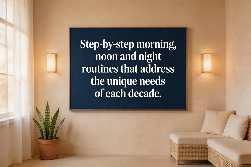 - Anti‑aging routine for 50s: Cleanser → vitamin C → peptide moisturizer → SPF 30+; nightly retinol + ceramide night cream; weekly growth‑factor serum.
