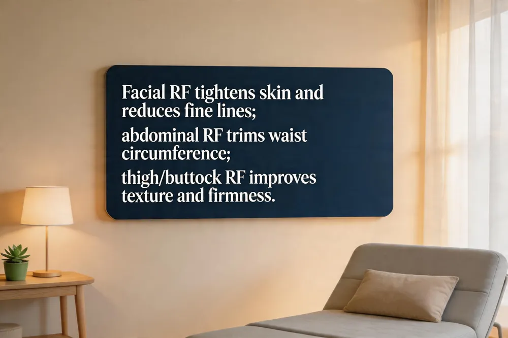 RF skin tightening machine Professional platforms such as Thermage, Accent, and Venus Legacy are FDA‑cleared, delivering precise thermal energy to the dermis while protecting the epidermis. These devices are operated by board‑certified physicians who follow strict safety protocols, minimizing risks of burns, scarring, or nerve injury. The clinic selects the appropriate system based on individual anatomy, ensuring personalized, evidence‑based care.