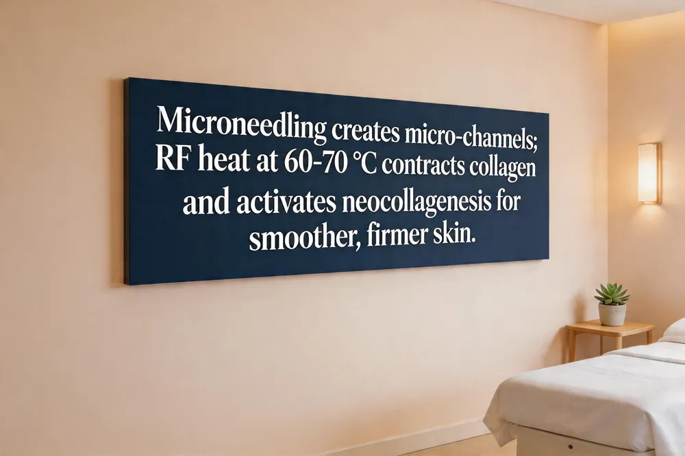 RF microneedling combines insulated needles with RF energy to deliver controlled heat deep into the dermis, creating precise micro‑channels. The tiny channels initiate a natural wound‑healing cascade, and the RF‑induced temperature rise (typically 60‑70 °C) causes immediate collagen fiber contraction and triggers fibroblast activation. This dual action results in neocollagenesis and elastin remodeling over weeks.